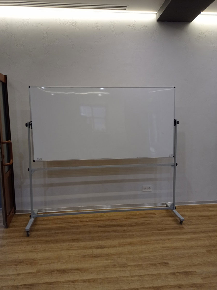Флипчарт - это магнитная эмалированная доска установленная на специальной подставке (треноге). Используется для проведения презентаций и образовательных семинаров. Для письма на поверхности используют специальные маркеры на спиртовой основе. Зачастую флипчарты оборудованы прижимными планками для крепления бумажных листов различного формата, что позволяет использовать его также в качестве маркерной доски. Для работы с флипчартом понадобится: маркеры, магнитные держатели, салфетки, спрей-очиститель.