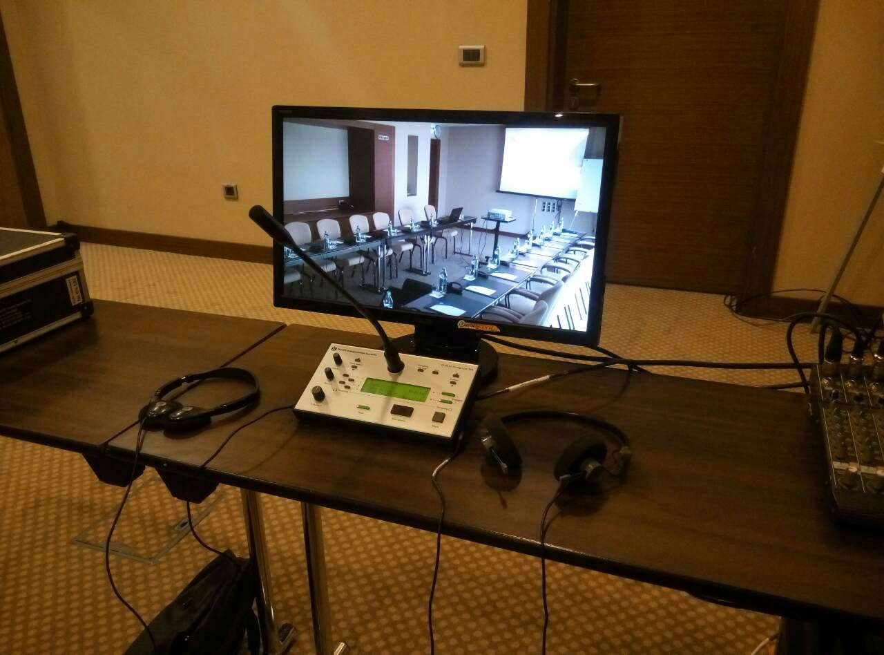 Международные конференции, презентации, семинары, форумы стали неотъемлемой частью современного бизнеса. Как правило, проведение такого уровня мероприятий связано с проблемой языкового барьера между участниками. Все заключается в том, что многообразие языков затрудняет полноценное общение. Идеальным решением этой проблемы является система синхронного перевода - набор специализированного оборудования, которая позволяет делегату конференции слышать перевод незнакомого ему языка синхронно с выступлением докладчика. Оборудование для синхронного перевода основано на одновременном переводе речи выступающего и разделении полученного перевода на каналы для каждого из языков. С помощью индивидуальных приемников, оснащенных селектором каналов, все участники получают возможность слушать свой язык перевода.